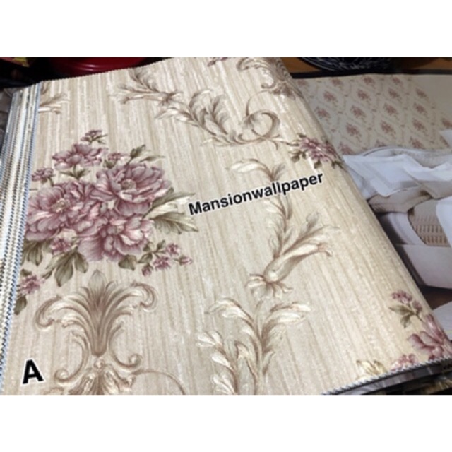 Wallpaper Dinding Bunga Shabby Klasik 3D Ungu Hijau Gold ...
